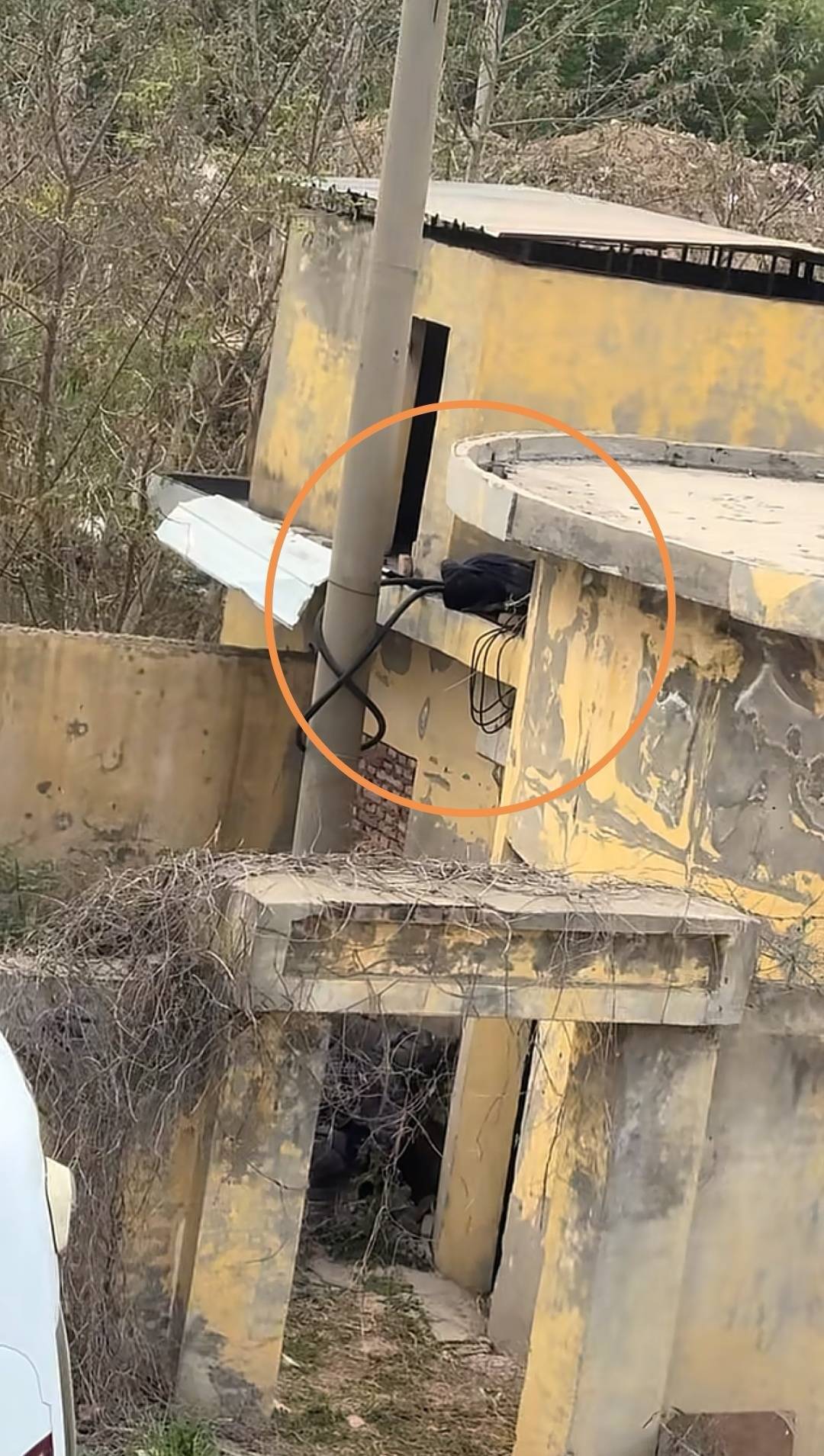 多段网友拍摄的视频显示,在一处桥梁附近的废弃灌溉站,一名男子脸部朝下躺在屋顶平台上,其身体一动不动,现场停放着120急救车和警车,民警拉起了警戒线,消防救援人员正在救援,医护人员在一旁协助。记者注意到,灌溉站院内地面布满杂草,一旁矗立着一根电线杆。