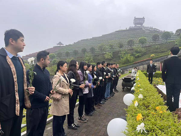 仪式现场庄严肃穆。全体人员为逝者默哀,工作人员与市民代表将写满寄语的卡片用黄丝带系于枝头,不少热心市民为逝者送上鲜花、躬身鞠躬,表达深切缅怀。本次活动由涪陵区民政局主办、区宝鼎山陵园承办,相关单位代表及媒体参与。